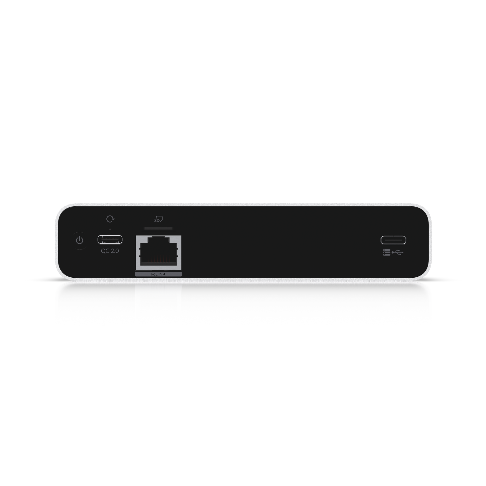 De stroomvoorziening is flexibel: het apparaat ondersteunt Power over Ethernet (PoE) voor een nette en efficiënte installatie, maar kan ook gevoed worden via een optionele USB-C adapter die compatibel is met Quick Charge 2.0/3.0. De ingebouwde bluetooth-functionaliteit maakt een snelle en eenvoudige installatie mogelijk, terwijl het OLED-display in grijstinten realtime systeeminformatie toont.